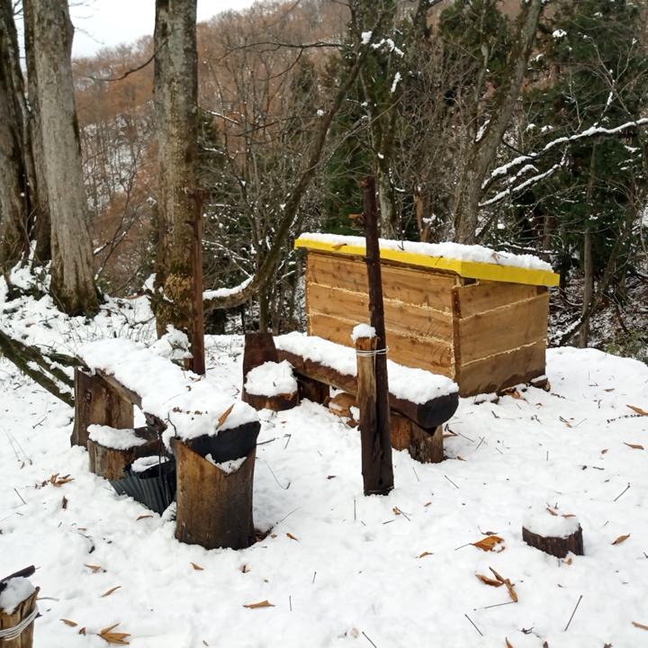 ![]() 11月19日 山の初雪。 約10センチ。 今年山に来るのもぼちぼち終わりかと思うと ちょっと寂しい。 熊はもう寝たかな。 今年はクルミが不作 やったし、楢木は楢枯れで減ったし、きっと 満腹にならずに冬眠するしかなかったと思 う。 ここに上ってくる途中山から下りていく イノシシに出会った。 奴は何食べてるか知らんけど太ってた。