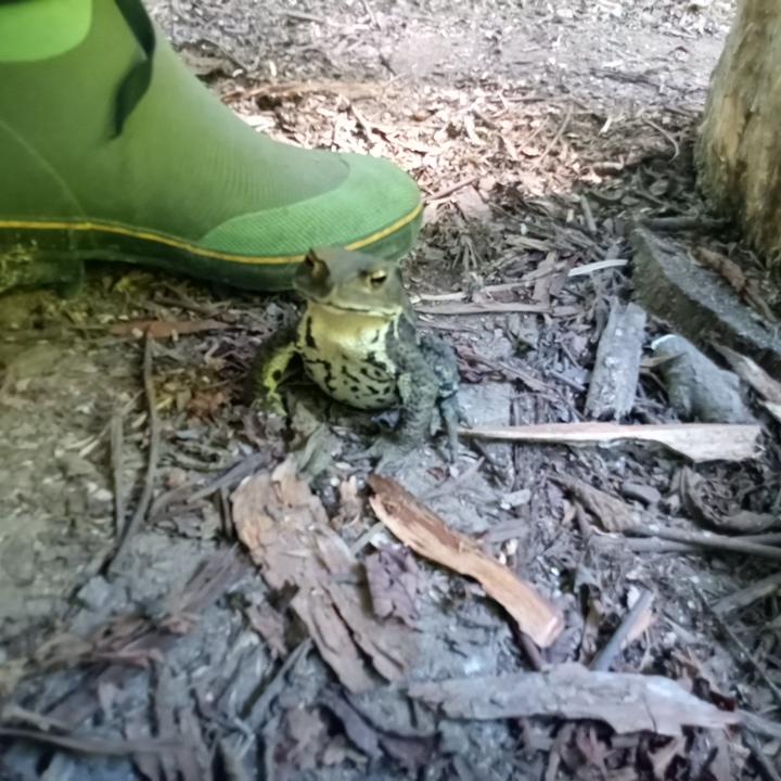 ![]() 毎年梅雨入り前から梅雨明け過ぎごろまで シートを張ってある下によくいるカエル。 でかい。 シート周りにこのサイズのカエルが3匹いて こいつはその中で一番小さいのにこいつだ けがなれなれしく足元に寄って来るのでたま に踏みそうになる。 でも触らしてはもらえない。 自分にネーミングのセンスがないことが分っているので名前は付けない。 表情が変わらないので感情が読めず全く面白くないけど、なんか可愛くはある。